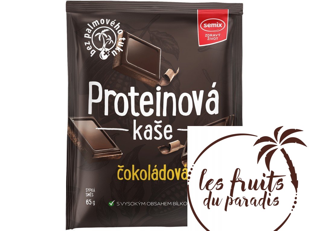 PROTEINOVÁ KAŠE ČOKOLÁDOVÁ, SYPKÁ SMĚS Proteinová kaše čokoládová obsahuje 18 g bílkovin na jednu porci z kvalitního syrovátkového proteinového koncentrátu, dále má vysoký obsah vlákniny a nízký obsah nasycených tuků. Bez palmového tuku.